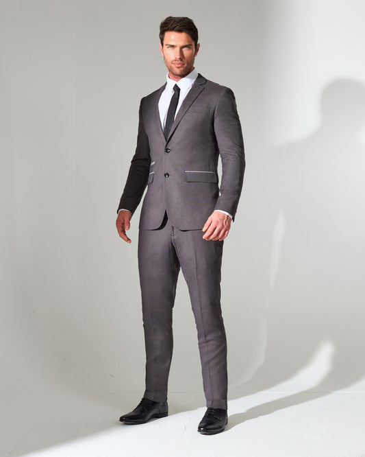 Close Tailored Fit Light Grey Textured Suit- Marble Stone Grey