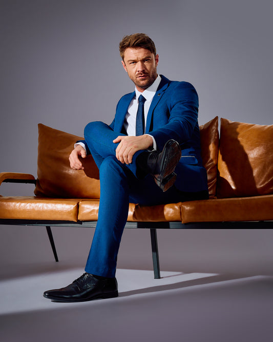 Regular price £179.99Regular priceUnit price / perSale price £179.99Men’s two-piece suit in Royal Navy Blue, featuring contrasting trim details on the pockets and sleeves. Expertly tailored from a carefully blended textured fabric that offers structure and shape whilst ensuring some stretch for movement and all day comfort.